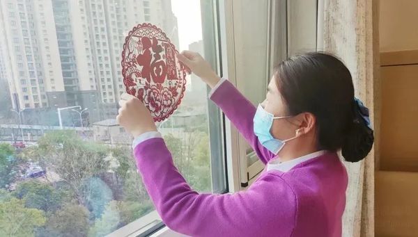 △护士贴窗花、送福兔